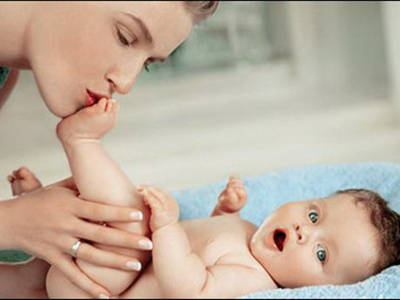 寶寶清醒后,喂奶,拍嗝。之后放在媽媽身邊,讓寶寶和媽媽做些親子互動。